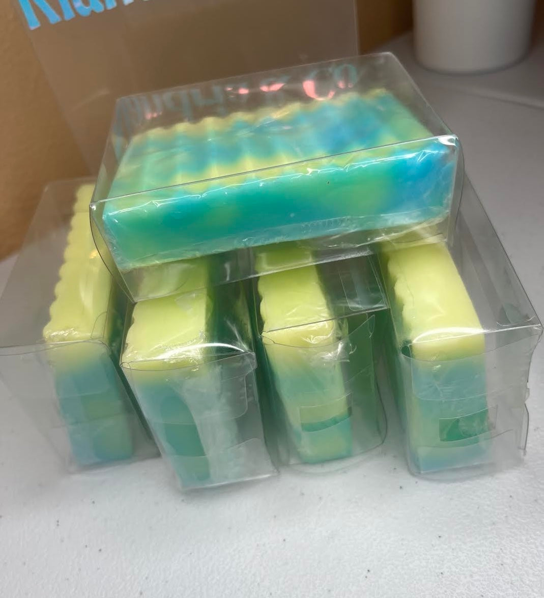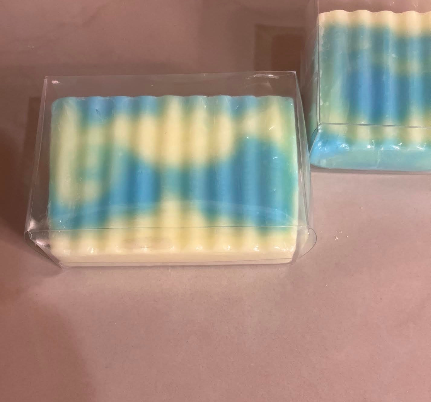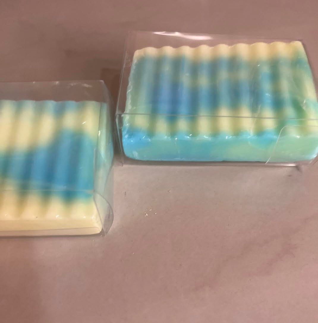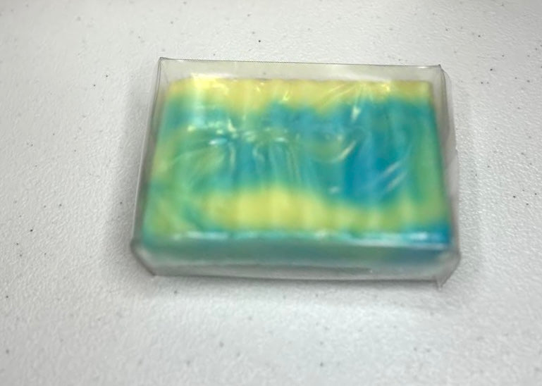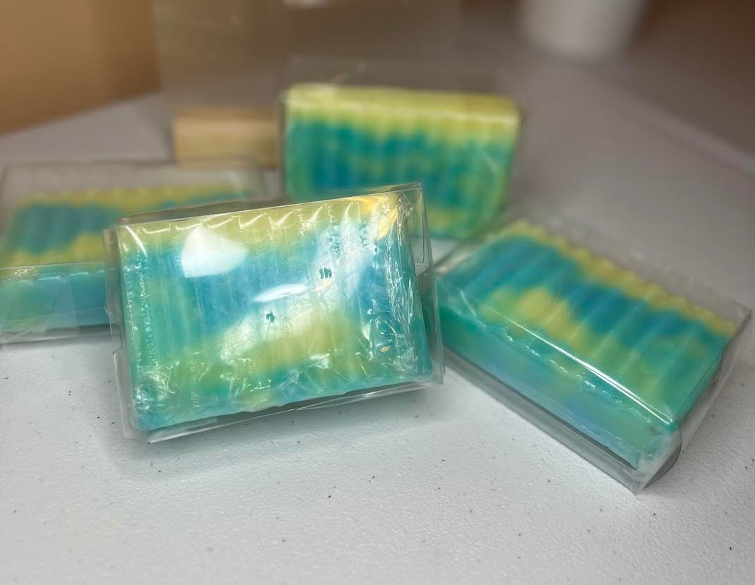 Bring the islands to your shower with our soap bar. Made with nourishing coconut and shea, this bar gives a rich, foamy lather that feels amazing and leaves a soft tropical scent behind. The bright yellow and blue swirls make it as fun to use as it is to look at.